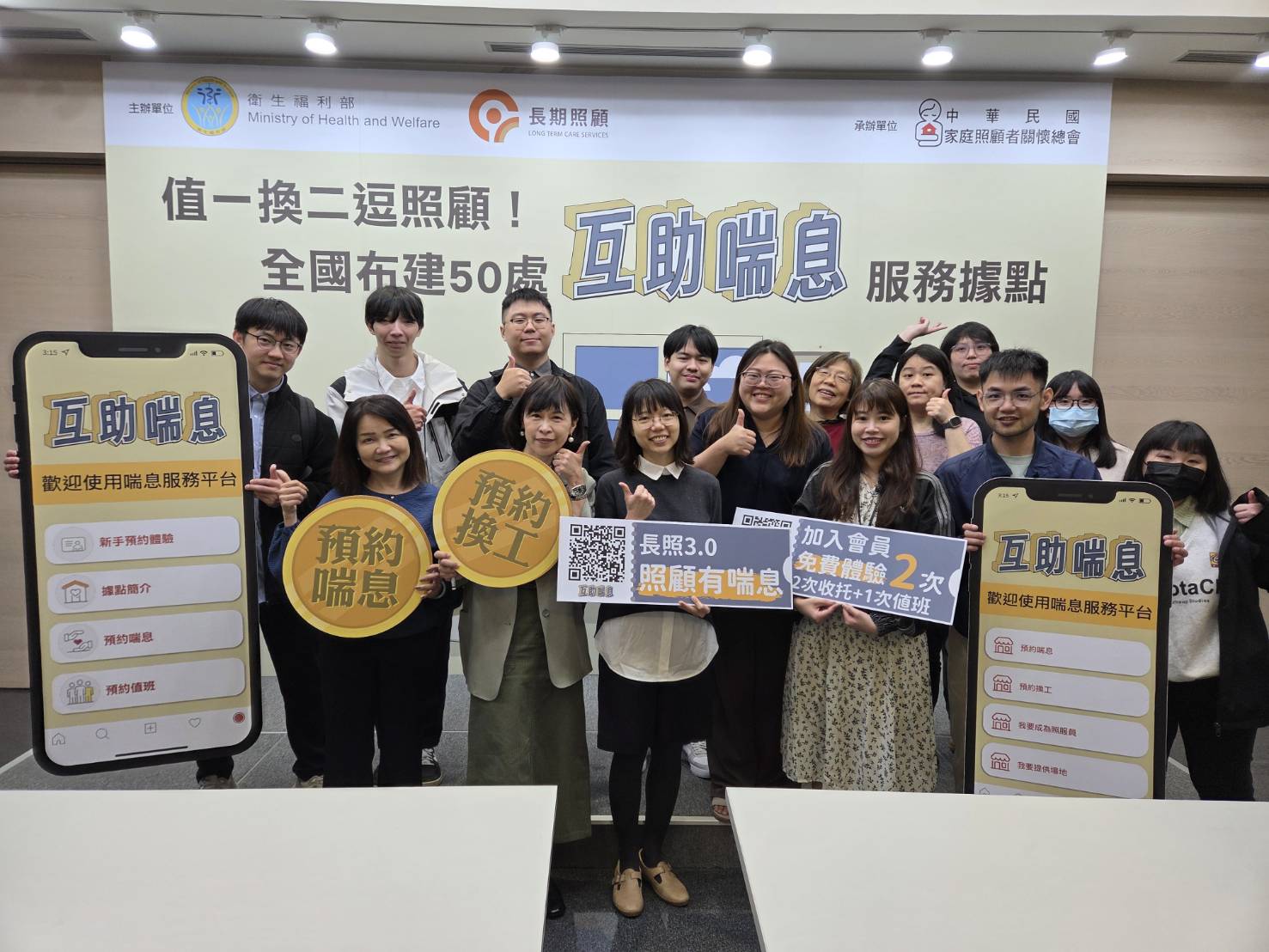 「值ㄧ換二逗照顧,全國布建50處互助喘息服務據點」記者會,2026年3月27日(五)在衛福部舉行。國內各大媒體及關心家庭照顧者的民眾、並全台50個據點一起線上參加,衛福部次長呂建德及衛福部長照司祝健芳司長也到場參與,記者會由中華民國家庭照顧者總會陳景寧秘書長主持。